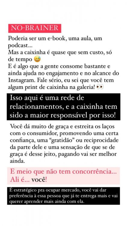 Ana, acabei de jogar no social blade e seu engajamento no @anap.psicologa é 0,15%. 44k seguidores com média de like das últimas 20 publicações em 61. Eu, aqui na agência, não pego cliente assim e sou bem clara: dê tchau ao perfil. "Ai, mas o número..." é uma autoridade falsa, sabe? Poxa, nem alcança as pessoas. É só um número de seguidores alto. Eu produziria em uma nova conta, crescendo de maneira saudável e tendo um controle maior sobre o meu engajamento.2 pontos