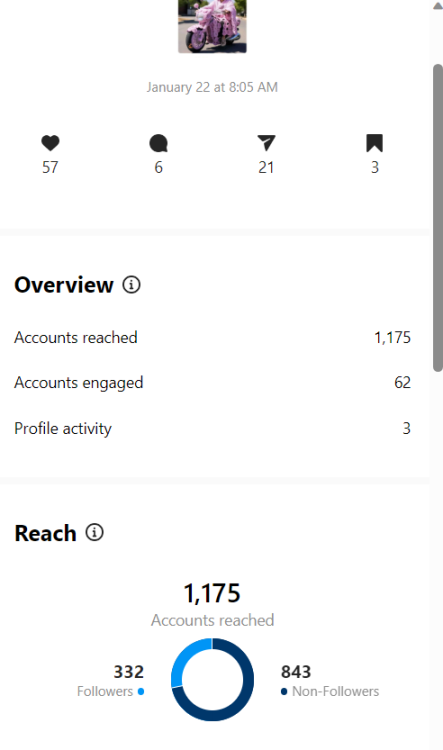 Ainda estou engatinhando e tenho muito trabalho pela frente, mas fiquei muito feliz ver o engajamento aumentar 158% em 3 semanas e o número de contas alcançadas para quase 100 contas a mais em apenas 1 semana depois de ter começado a aplicar as técnicas do Superpoder. Mesmo postando com alguma frequência, nada mudava no meu meu perfil há um bom tempo e ver as coisas evoluírem renova os ânimos! Boa voar!!!1 ponto