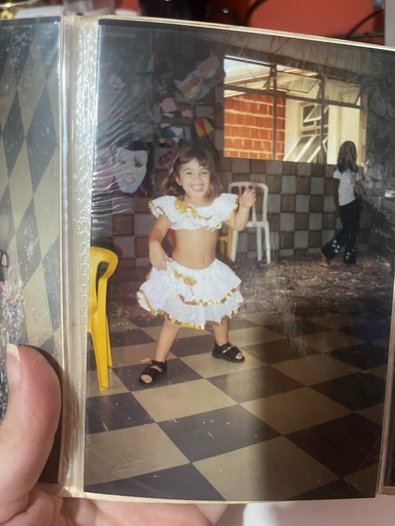 Olá, galeraa! Vou começar Eu sempre amei o carnaval, adorava os confetes e serpentinas. Toda aquela animação na escola era bom demais. Meus pais sempre me incentivaram a participar de tudo, então eu adorava escolher a fantasia para o dia. Uma coisa que nunca fiz foi pintar o cabelo de colorido, mas queria muito! Eu mesma fazia minhas bolinhas com perfurador de papel, enchia os saquinhos pra jogar tudo no chão depois kk. Só criança mesmo. Bons tempos, faz tempo que não participo de uma folia assim. E aqui algumas fotos que achei no fundo do baú só pra brincar com vocês. kk Quem é o próximo a passar vergonha aqui. Boraa!1 ponto