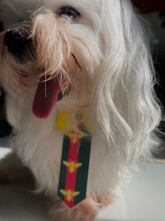Olha sinceramente eu não acredito em coincidências. Hoje no aniversário do Paulo, meu cachorro chegou em casa com uma gravata que reflete a identidade visual dele. O verde, amarelo (que nesse caso não é dourado mas tá valendo) e o mais chocante: A BESELHA ou sei lá que inseto seja esse da gravata. Mas parece muito com o símbolo né não? @Paulo Cuencase você estiver vendo isso, feliz aniversário. Até o Fred tá arrumado pra celebrar com você