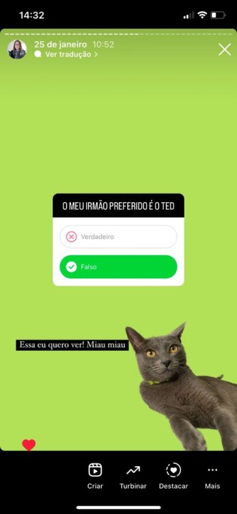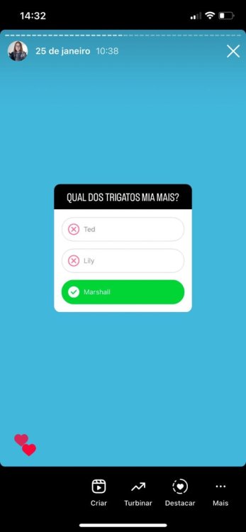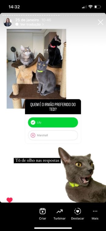 Como sou do nicho pet, eu e a minha estrategista @Andressa Maria Tonin fizemos as perguntas e respostas sobre os meus gatos, os seguidores amaram, super engajaram. Link do perfil: https://www.instagram.com/trigatos/ Link do destaque: https://www.instagram.com/stories/highlights/18341864899032064/ Print das perguntas: