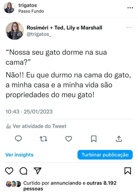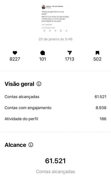 Como sou do nicho pet, peguei essa crença de que está tudo bem o pet dormir na cama, que eles são parte da família e soberanos hahahahah Deu um resultado MUITOO acima da média em compartilhamentos, alcance e curtidas. Print da publicação e das métricas: Link https://www.instagram.com/p/Cn1yA3eARYG/ Atualização das métricas dia 02/02