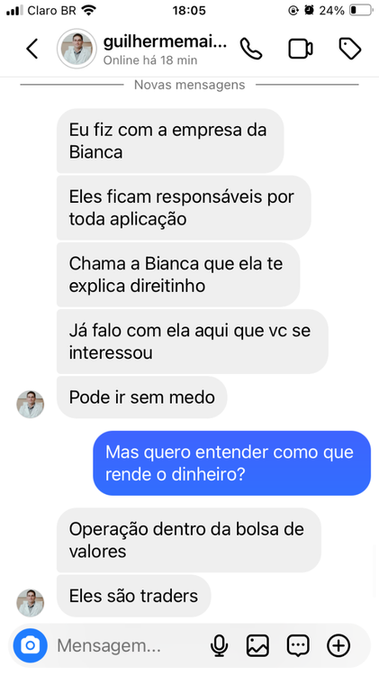 Eles mandam pra um perfil que tá se passando por assessora da XP (como sou cliente, aproveitei pra denunciar a fraude tb). Obrigada pelo vídeo do Hyeser, tô vendo aqui! Valeu pelo help.