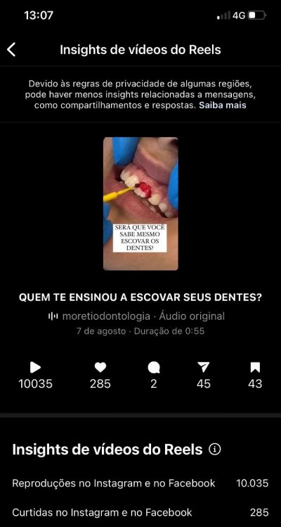 A Live BAGUNCINHA das meninas serviu de Inspiração que eu falasse de uma coisa super básica e deu muito bom: “Quem te ensinou a escovar seus dentes?” Parece óbvio , mas muita gente não sabe escovar os dentes direito. Mostrei uma coisa que faço todos os dias meninas Reels e fiz voice off. Tenho uma conta com 20.000 seguidores tive mais de 10.000 views , muito salvamentos e compartilhamentos. Valeu demais @bia henriques #12994 Segue o link: https://www.instagram.com/reel/Cg-cUIuPVnR/?igshid=YmMyMTA2M2Y=