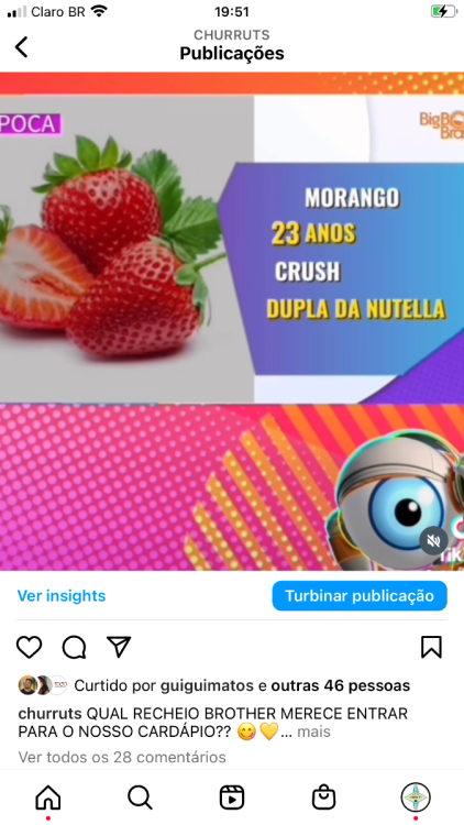 3. Aloha Beselhas!! Além da minha empresa de churros, também tenho a empresa de social media então estou aplicando o Desafio nos dois casos, vou compartilhar aqui o post que fiz sobre o assunto do momento BBB 23. No churros fiz um post no dia que divulgaram a lista dos brothers - utilizei o tema para fazer uma votação sobre a escolha do novo recheio, brincando com a casa de vidro. E no perfil da minha cliente fiz no primeiro dia do programa, com sabores de brigadeiros camarotes (que mais saem) e pipocas (que ninguém conhece muito mas que surpreendem). É incrível como pauta quente engaja, tem que estar muito ligada, ser rápida, e adaptar para o seu negócio!