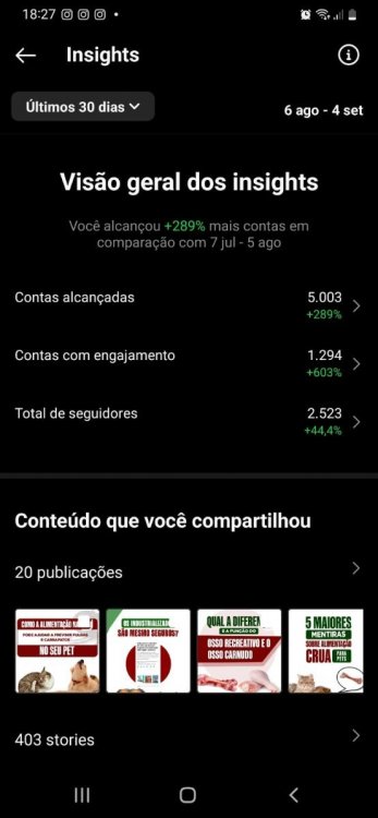 Olá beselhas!! Estou aqui para compartilhar os resultados do meu primeiro cliente para comemorar com vocês, fechei com ele um pouco depois de começar a FEC - estou cuidando há 3 semanas. Colocamos em ordem: Bio, crenças e identidade visual; Storys (felizmente para nós dois ele não tem problemas em aparecer kkk); Lives e posts em collab. 5 posts na semana. Vou deixar o instagram dele para caso queiram dar uma olhada e compartilhar um isight: @nutrivetfelipe Vou deixar os insights, além disso o faturamento dele em consultas online foi de R$220,00 no mês anterior para R$1320,00 nessas 3 semanas e no presencial foi de R$1412,00 para R$3130,00!