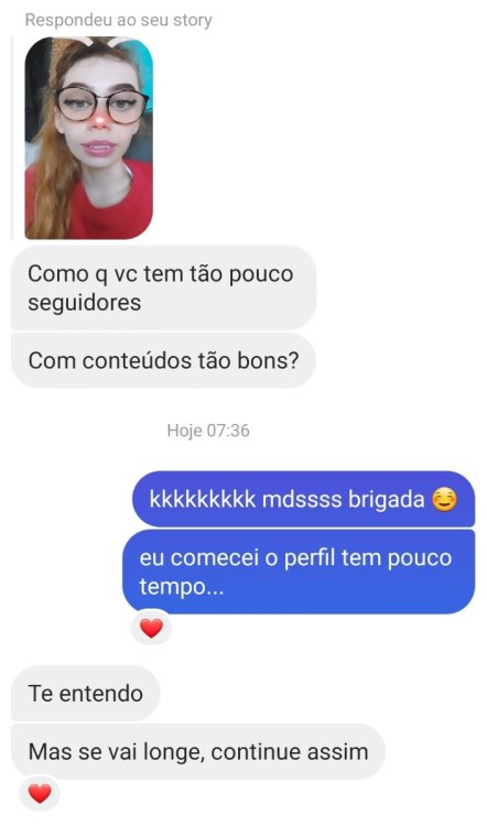 3. quando vcs criaram o perfil de vcs, tinham expectativas de que os amigos e familiares fossem apoiar? eu não tinha expectativa nenhuma porque a maioria dos meus conhecidos não tem interesse nos meus assuntos kkkkk criei perfil novo e segui alguns poucos que pensei que pudessem gostar... aí agora toda a vez que me apoiam fico super bobinha do nada curtem todos meus stories, mandam mensagem dizendo que estão amando minha nova fase, repostam minhas coisinhas e tal, acho tão fofo que me sinto até meio abobada de expressar kkkkk