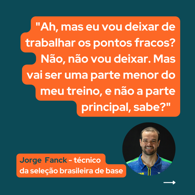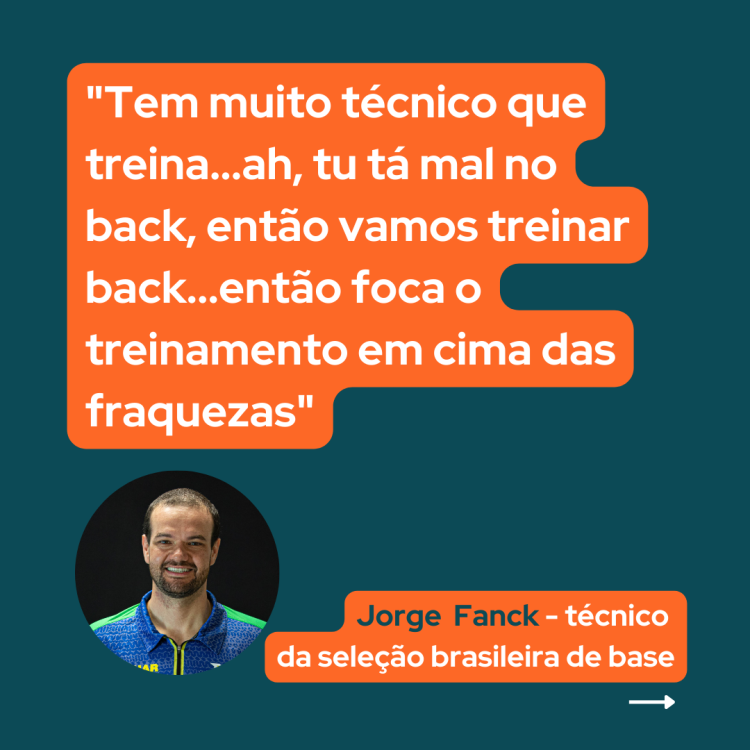 Oi pessoal, tenho um instagram sobre tênis de mesa (@horadopingpong) e uma das editorias que mais está performando é uma de frases/entrevista. Foi muito bacana ver que a edição 45 do portal estava aprofundando esse assunto. De uma maneira geral, vejo que tem funcionado o seguinte: (i) usar a frase de algum atleta ou técnico relevante do meio; (ii) compartilhar algo polêmico ou algo que as pessoas também gostariam de dizer. Como consequência, o alcance costuma ser maior que a média, pois acaba tendo bastante curtida, compartilhamento e comentários. Abaixo, compartilho um exemplo que estou usando. "Você constrói o seu jogo pensando nas suas forças ou nas suas fraquezas? @jorgefanck é técnico da seleção brasileira de base e trouxe essa reflexão após um intercâmbio na França. A @cbtenisdemesa compartilhou todos esses aprendizados numa série no Youtube chamada "Pílulas Conexão Brasil-França" e hoje separei esse trechinho pra vocês. Agora me diz, como que você constrói o seu jogo? Comenta aqui embaixo "