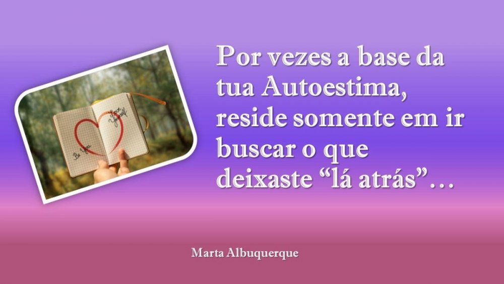 E verdade... Por vezes procuramos o que temos, só não sabemos que já está lá. Vou amplificar. Quando eras pequena, tinhas sonhos, tinhas objetivos (e espero que ainda tenhas), que já nessa altura, após a primeira infância, te moviam e te faziam querer SER uma médica, uma professora, uma dona de casa, trabalhar numa grande empresa, etc, etc... A maioria desses sonhos foram guardados na gaveta, ou porque a vida te impôs, ou porque se geraram em ti camadas e camadas de crenças, que não te permitiram SER tudo aquilo que querias. Para comecarmos devagarinho, faz uma lista de atividades que gostavas de fazer, como andar de bicicleta, jogar monopólio, ler determinados livros, etc... O que importa é que RESGATES esses teus amores "perdidos", sejam eles quais forem e pensa: O que ainda posso fazer? O que gostava de voltar a repetir porque me fazia feliz? Faz!!! Esse é o princípio BASE da Autoestima: Ama-te conforme és, não te desculpes pela tua essência, age sem medo do que os outros pensam (a crítica é base da sociedade em que vivemos). Diverte-te! Faz com que a criança que eras, tenha orgulho no adulto em que te tornaste...