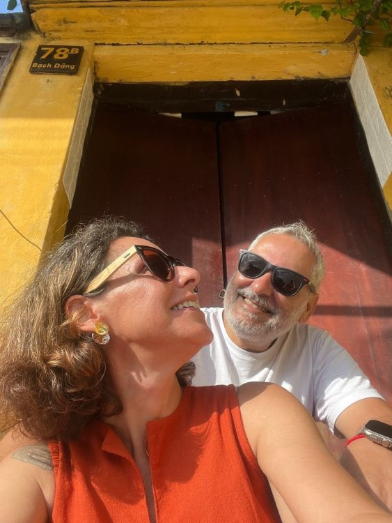 Eu cim 45 anos e ele com 52 anos. Agora acho que paramos.... encontramos o verdadeiro elo que nos mantém unidos: nossa paixão por viajar. Aqui estamos nós, no Vietnã, preparando-nos para a próxima etapa da nossa jornada: a Índia. Já percorremos mais de 50 países, e cada fronteira atravessada é uma vitória, cada cultura conhecida é uma página a mais no livro das nossas aventuras.