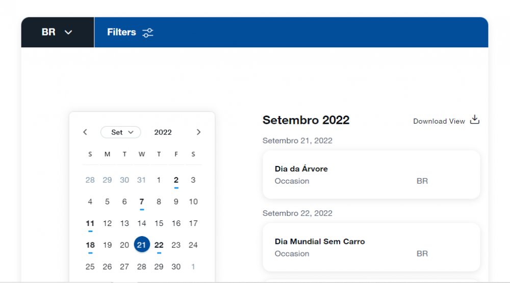 Aproveitando um post da @Marília Cerqueira sobre usar os Trends Topics do Twitter (pautas fervendo): Lhes apresento outra ferramenta deles que é maravilhosa pra você que quer aproveitar todos os eventos pra produzir conteúdo que é o Calendario do Twitter (https://business.twitter.com/pt/resources/twitter-marketing-calendar.html#country=BR) E nele você pode Filtrar por País (aqui o exemplo do Brasil): Sabia que hoje no Canada é o dia Internacional de falar como Pirata? (Ahooooooy Marujo)... pois é se tivesse usando o Calendario do Twitter saberia haahahh E também é possível ver os eventos de interesse mundial: Além de poder filtrar por tipo de evento: Aproveitem essa ferramenta maravilhosa e não percam mais nenhuma data e usem sem moderação.