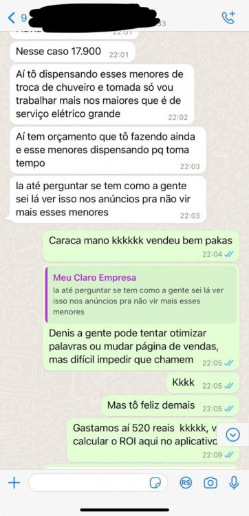 10. [Gestor de Tráfego] [Prestador de serviço -Eletricista] [Google Ads] Para prestadores de serviço do grupo como dentistas, médicos, eletricistas, psicológos, fisioterapeutas, etc. ANUNCIEM NO GOOGLE. Faturamento de R$ 17.900,00 com 532 reais investidos no google ads Meu cunhado é eletricista e eu insisti que deveriamos fazer anuncios no google (Atualmente tenho uma empresa de tráfego pago e estratégias de vendas com anúncios com mais de 35 clientes) Como tivemos esse resultado: Inicialmente gastamos 400 reais em uma página de vendas simples que mostravam ele trabalhando e uma copy que eu mesmo fiz. Campanhas na rede de pesquisa: Fiz campanhas geolocalizadas no raio de atuação que foi 30km. FIz uma campanha com 3 anúncios: 1° Palavras chaves do nicho (usei ideias dele e gerenciador de palavras chaves) 2° Segmentos personalizados ( pesquisa no google e youtube) 3° Públicos de construção, usuários de sites de construção, etc. Percebi rapidamente por nosso CPC de menos de 1 real que nadariamos de braçada tamanha é a falta de anúncios bem feitos no nicho. Resultado o meu cunhado já está tendo que descartar serviços menores. Um ROI de 3.442% sobre o investimento. Por isso indico que se você é prestador de serviço ANUNCIE NO GOOGLE URGENTEMENTE. Mostro meu dia a dia na minha empresa no Instagram @misaelmaramaldo Se fizer sentido, segue la. Espero ter ajudado, vlw galera!!