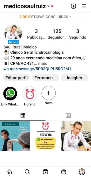 16. Paulo falou agora na Live que devemos comemorar, hoje eu criei o meu Insta não postei nada, mas já foi um progresso pois desde dia 11 digo que ia criar. Criei o do meu esposo hoje pela manhã Já tem 120 seguidores! tem umas 10 horas que criei.. kkk Legal né? Hoje antes dele sair para o trabalho falei, meu amor deixa eu tirar uma foto. Fomos até o consultorio que ao lado da nossa casa e fiz improviso de foto até fazer uma profissional. @medicosaulruiz A maior vitória foi fazer e mesmo não sendo a foto perfeita, nem tinha conteudo de nada, meti a cara e fiz, pois só tava adiando. O meu tbm... não postei nada , mas pelo menos criei Como aqui tá em uma onda forte de covid aproveitei e postei uma foto dele se vacinado e alertando da importáncia da quarta dose e uso de máscara. Tô feliz Aos poucos vou melhorando