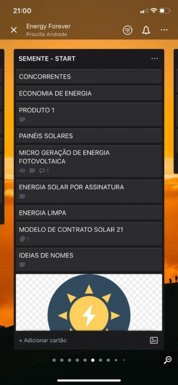 Você vai criando toda a organização por ele do seu jeito. Minha planilha ainda está em aprimoramento e me organizando para cada vez conseguir colocar o maior numero de informações sobre o mesmo cliente/assunto num mesmo lugar. O Trello me propiciou isso. Eu só usava a agenda e hoje estou conseguindo me libertar dela. Quase não uso mais. Minha nova agenda bem mais completa virou o Trello. Baixem o app e tentem usá-lo no computador. a Experiencia no celular não é tão boa na minha opinião.