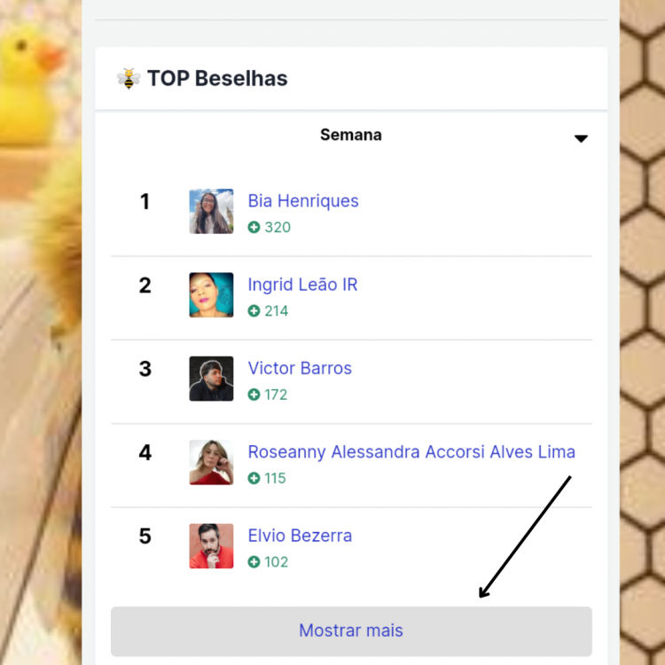 Quanto mais você "fuça" na comunidade mais você descobre as novidades ,hoje, descobri algo novo. Bem, sabemos que essa comunidade não para e muitas vezes não conseguimos interagir com todos os colegas, porém eu sentia dificuldade em achar as publicações feitas por uma Beselha específica. Ao entrar no perfil não conseguia achar Já que quando você entrar aparece todas as atividades que aquela pessoa teve na comunidade, desde: publicação de post(s) até distribuição de badge e comentários nos posts (s) de outras Beselhas. Porém, eu notei que: As Beselhas top 5 têm como ver o conteúdo publicado apenas. Você consegue ver todos os post(s) publicados por uma das Beselhas Top 5 ao invés de ver toda as atividades que ela fez na comunidade. Vamos ao passo a passo: No menu principal você vai ver as Top 5 Beselhas Clique em mostrar mais.. Depois clique no menu: " Conteúdo" da Beselha que você quer ver os post(s) Pronto, agora você consegue ver os post(s) específico daquela Beselha. Espero que tenha sido útil esse post Fotos explicativas
