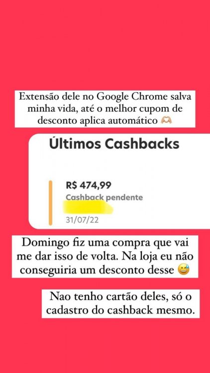 IMPORTANTE: NÃO TENHO CARTÃO OU CONTA, USO APENAS PARA O CASHBACK. JÁ OUVI FALAR HORRORES MAL DO CARTÃO, MAS MEU PIX DE CASHBACK SEMPRE FUNCIONA CERTINHO!