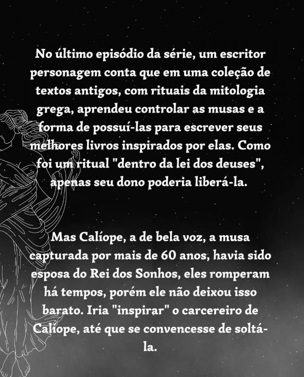 Assistindo à série, identifiquei um bloqueio de criatividade no escritor. Que recorreu a uma entidade mitológica para ter ideias. Então fiz esse post. Estou vendo o que poderia ter melhorado e o que ficou bom… talvez a CTA fosse para salvamento… Alguém com olhar aguçado poderia me dar esse feedback? Sou toda ouvidos!! https://www.instagram.com/p/Cl0vqQIug1e/?igshid=YmMyMTA2M2Y= Com carinho, Sarah Brito.